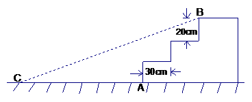 如图,某公园入口处原有三阶台阶,每级台阶高为20cm,深为30cm.为方便残疾人士,拟将台阶改为斜坡,设台阶的起点为A,斜坡的起始点为C,现将斜坡的坡角∠BCA设计为12°,求AC的长度。 (精确到1 cm)