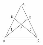 19.(6分)如图,已知:⊿ABC中,∠1=∠2,且AE=AD,BE和CD相交于F。求证:BF=CF。