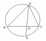 (6分)如图,已知∠BAC的平分线与⊿ABC的边BC和外接圆分别相交于D、E。
