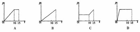 8.现往一塑料圆柱形杯子(重量忽略不计)中匀速注水,已知10秒钟能注满杯子,之后注入的水会溢出,下列四个图象中,能反映从注水开始,15秒内注水时间t与杯底压强P的图象是 ( )
