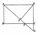 (本小题6分)如图,在矩形ABCD中,F是BC边上的一点,AF的延长线交DC的延长线于G,DE⊥AG于E,且DE=DC,根据上述条件,请你在图中找出一对全等三角形,并证明你的结论。