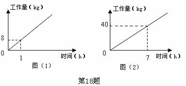 18.放假了,小明和小丽去蔬菜加工厂社会实践,两人同时工作了一段时间后,休息时小明对小丽说:“我已加工了28千克,你呢?” 小丽思考了一会儿说:“我来考考你.图⑴、图⑵分别表示你和我的工作量与工作时间的关系,你能算出我加工了多少千克吗?” 小明思考后回答:“你难不倒我,你现在加工了 千克.”