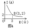 9、某闭合电路中,电源电压为定值,电流I(A)与电阻R(Ω)成反比例, 图4表示的是该电路中电流I与电阻R之间函数关系的图象,则用电阻R表示电流I的函数解析式为( )