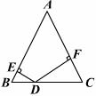 19、已知:如图,D是等腰ABC底边BC上一点,它到两腰AB、AC的距离分别为DE、DF。当D点在什么位置时,DE=DF?并加以证明.