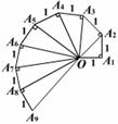如图是第七届国际数学教育大会的会徽。它的主题图案是由一连串如图所示的直角三角形演化而成的。设其中的第一个直角三角形OA1A2是等腰三角形,且OA1=A1A2=A2A3=A3A4=……=A8A9=1,请你先把图中其它8条线段的长计算出来,填在下面的表格中,然后再计算这8条线段的长的乘积。
