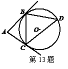 13.如图,AB、AC是⊙O的两条切线,切点分别为B、C,D是优弧︵BC上的