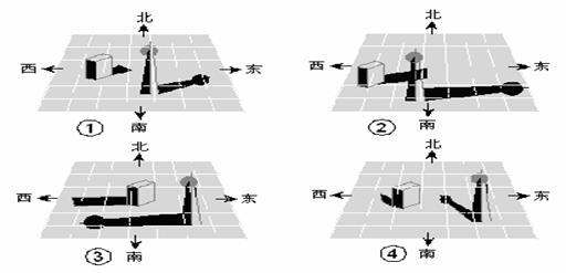 3.下面是一天中四个不同时刻两个建筑物的影子: