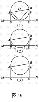 已知:如图16(1),直线MN和⊙O切于点C,AB是⊙O的直径,AD⊥MN于O,BE⊥MN于E,交⊙O于F.连结AC、BC.