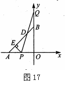 24.如图17,A、B两点的坐标分别为(-3,0)、(0,3),C点在x轴的正半轴上,且到原点的距离为1.点P、Q分别从A、B两点同时出发,以相同的速度分别向x轴、y轴的正方向作匀速直线运动,直线PQ交直线AB于D.