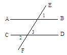 1、如图,直线AB、CD被EF所截,已知∠1=∠2,求证:AB∥CD。