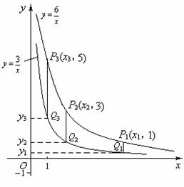在第一象限内的图象如图所示, 点P1,P2,P3,…,P2 005在反比例函数