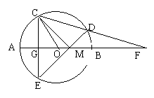 18(9分) 如图,⊙O的直径为AB,过半径OA的中点G作弦CE⊥AB,在弧CB上取一点D,分别作直线CD,ED交直线AB于F,M,连结OC,MC.