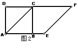 如图2,以正方形ABCD的对角线AC为一边,延长AB到E,使AE = AC,以AE为一边作菱形AEFC,若菱形的面积为