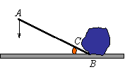 如图,是用杠杆撬石头的示意图,C是支点,当用力压杠杆的端点A时,杠杆绕C点转动,另一端点B向上翘起,石头就被撬动.现有一块石头,要使其滚动,杠杆的B端必须向上翘起10cm,已知杠杆的动力臂AC与阻力臂BC之比为5︰1,则要使这块石头滚动,至少要将杠杆的端点A向下压[ ]