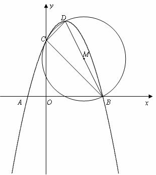 )交x轴于点A(-1,0)、B(3,0),交y轴于点C,顶点为D,以BD为直径的⊙M恰好过点C.