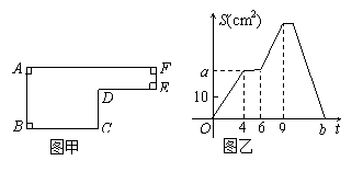 24.(本小题10分)已知动点P以每秒2cm的速度沿图甲的边框按从B→C→D→E→F→A的路径移动,相应的△ABP的面积S关于时间t的函数图象如图乙.若AB=6,试回答下列问题: