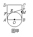 27.(本题12分)如图甲,正方形ABCD的边长为2,点M是BC的中点,P是线段MC上的一个动点(不运动至M,C),以AB为直径作⊙O,过点P作⊙O的切线交AD于点F,切点为E.