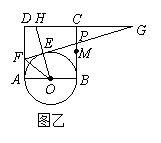 (3)延长DC,FP相交于点G,连结OE并延长交直线DC于H(如图乙).是否存在点P,