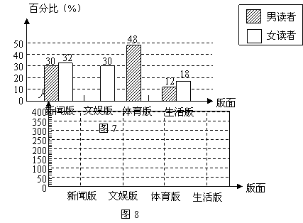 (2)请分别计算出喜欢各版面的总人数,并根据计算结果利用图8画出折线统计图;
