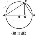 12.如图,AB为◎o的直径,弦AC=4cm,BC=3cm,CD⊥AB,垂足为D,那么CD的长为____cm.