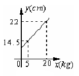 22.(南通市)如图,弹簧总长y(cm)与所挂物体质量x(kg)之间是一