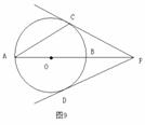 (本题满分7分)如图9,AB是⊙O的直径,P在AB的延长线上,PD与⊙O相切于D,C在⊙O上,PC=PD.