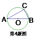 4、如图,AB为⊙O的直径,点C在⊙O上,∠B=50°,则∠A= 度。