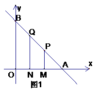 与x轴交于点A,与y轴交于点B,动点M在x轴的正半轴上,N为OM的中点,过M、N分别作x轴的垂线,交直线于点P、Q,设N点的坐标为(x,0)。