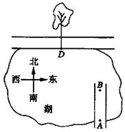 25. 如图,一人工湖的对岸有一条笔直的小路,湖上原有一座小桥与小路垂直相通,现小桥有一部分已断裂,另一部分完好. 站在完好的桥头A测得路边的小树D在它的北偏西30°,前进32米到断口B处,又测得小树D在它的北偏西45°,请计算小桥断裂部分的长(结果用根号表示).