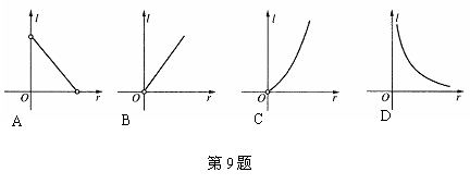 9.如果一个圆柱的侧面积为16,那么这个圆柱的高l与底面半径r之间函数关系的大致图象是( )