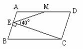 如图,在□ABCD中,AD=2AB,M是AD的中点,CE⊥AB于点E,∠CEM=40°,则∠DME是( )