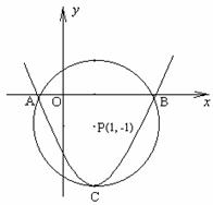 26.(12分) 如图,在直角坐标系中,以点P(1 ,-1)为圆心, 2为半径作圆, 交x轴于A、B两点, 抛物线