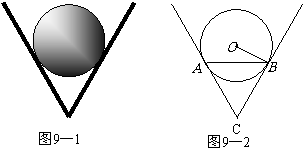 如图9-1,一个圆球放置在V形架中.图9-2是它的平面示意图,CA和CB都是⊙O