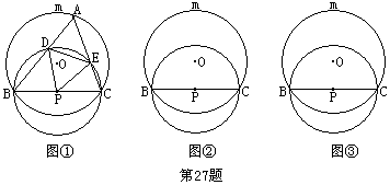 27.如图,⊙O与⊙P相交于B、C两点,BC是⊙P的直径,且把⊙O分成度数的比为1:2的两条弧,A是