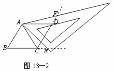(2)当三角尺的两边分别与菱形的两边BC,CD的延长线相交于点E,F时(如图13-2),你在(1)中得到的结论还成立吗?简要说明理由.