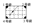 如图是一个经过改造的台球桌面的示意图,图中四个角上的阴影部分分别表示四个入球孔.如果一个球按图中所示的方向被击出(球可以经过多次反射),那么该球最后将落入的球袋是 [ ]