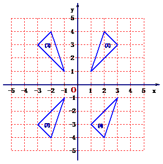 (1)在图3所示编号为①、②、③、④的四个三角形中,关于y轴对称的两个三角形的编号为 ;关于坐标原点O对称的两个三角形的编号为 ;