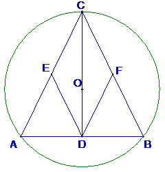 已知:如图6,圆O是△ABC的外接圆,圆心O在这个三角形的高CD上,E、F分别是边AC和BC的中点,求证:四边形CEDF是菱形.