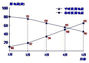 小明家使用的是分时电表,按平时段(6:00-22:00)和谷时段(22:00-次日6:00)分别计费,平时段每度电价为0.61元,谷时段每度电价为0.30元,小明将家里2005年1月至5月的平时段和谷时段的用电量分别用折线图表示(如图7),同时将前4个月的用电量和相应电费制成表格(如表1)