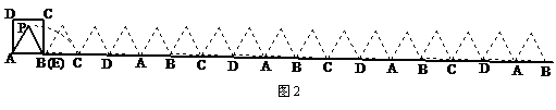 (1)如果我们把正方形ABCD的边展开在一直线上,那么这一翻转过程可以看作是△PAE在直线上作连续的翻转运动. 图2是k=1时,△PAE沿正方形的边连续翻转过程的展开示意图. 请你探索:若k=1,则△PAE沿正方形的边连续翻转的次数n= 时,顶点P第一次回到原来的起始位置.