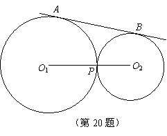 如图,⊙O1和⊙O2外切于点P,直线AB是两圆的外公切线,A,B为切点,试判断以线段AB为直径的圆与直线O1O2的位置关系,并说明理由.