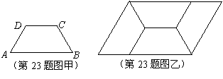 如图甲,四边形ABCD是等腰梯形,AB∥DC. 由4个这样的等腰梯形可以拼出图乙所示的平行四边形.