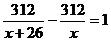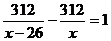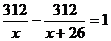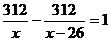一列列车自2004年全国铁路第5次大提速后,速度提高了26千米/时,现在该列车从甲站到乙站所用的时间比原来减少了1小时,已知甲、乙两站的路程是312千米,若设列车提速前的速度是x千米,则根据题意所列方程正确的是( )