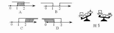 如图5,天平右盘中的每个砝码的质量都是1g,则物体A的质量m(g)的取值范围,在数轴上
