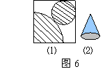 14、如图6⑴,在正方形铁皮上剪下一个圆形和扇形,使之恰好围成如图6⑵所示的一个圆锥模型,设圆