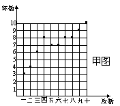 19、甲、乙两人在相同的条件下各射靶10次,射靶的成绩如图所示: