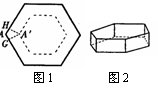 将一块正六边形硬纸片(如图1),做成一个底面仍为正六边形且高相等的无盖纸盒(侧面均垂直于底面,如图2),需在每一个顶点处剪去一个四边形,例如图1中的四边形AGA/H,那么∠GA/H的大小是 60 度。