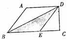 如图,在直角梯形ABCD中,AD∥BC,CD⊥BC,E为BC边上的点。将直角梯形沿对角线BD折叠,使△ABD与△EBD重合(如图中阴影部分)。若∠A=130°,AB=4cm,求梯形ABCD的高CD的长(结果精确到0.1cm).