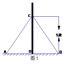 (本小题满分10分)如图5,在离地面高度5米处引拉线固定电线杆(电线杆与地面垂直),拉线AC的长6.18米,