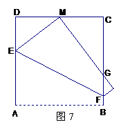 24. (本小题满分13分) 如图7,将边长为4的正方形ABCD折叠,使顶点A与CD边上的点M重合,折痕交AD于E,交BC于F,边AB折叠后与BC边交于点G.